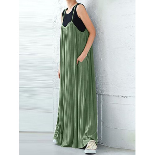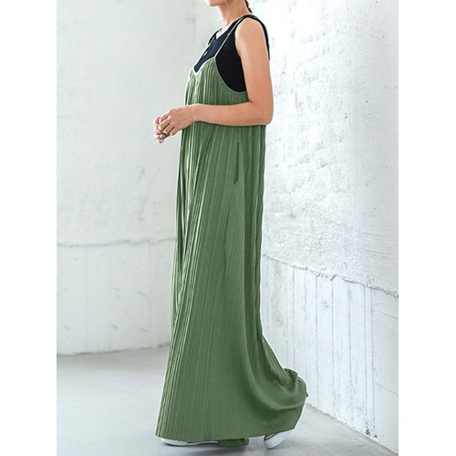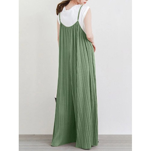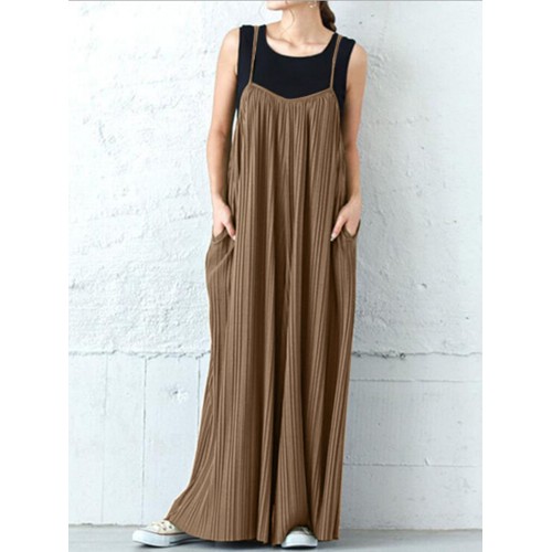 Solid Textured Adjustable Strap Pocket Casual Jumpsuit