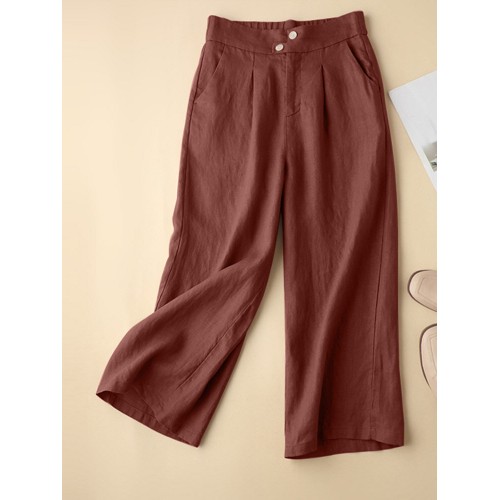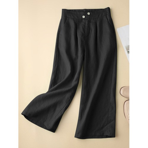 Solid Pocket Zip Front Elastic Waist Straight Leg Pants