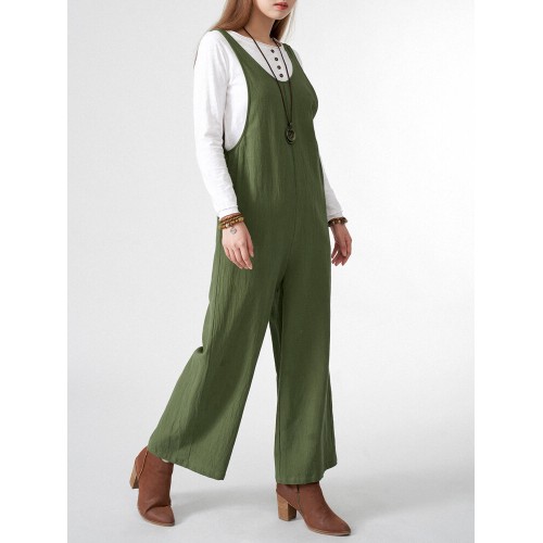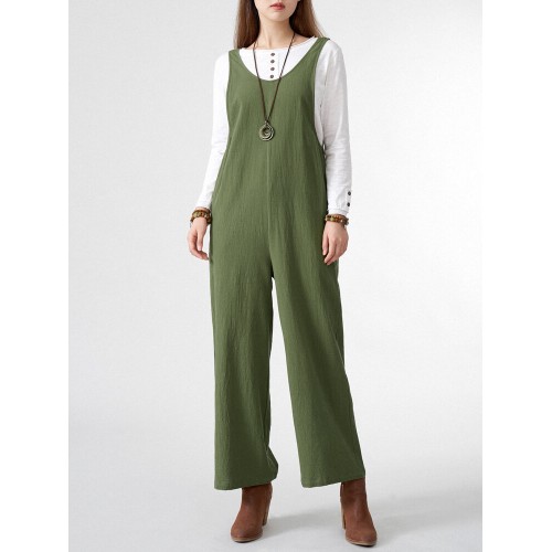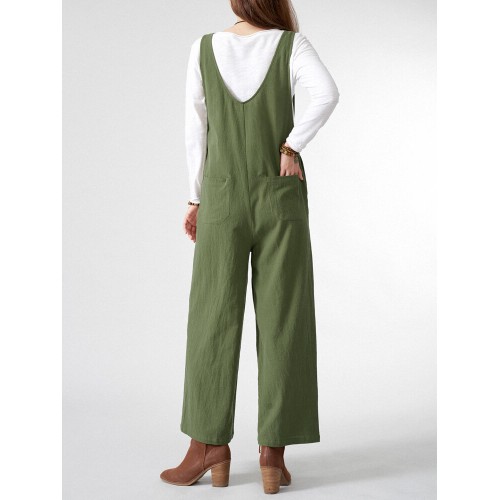 Solid Pocket Open Back Sleeveless Straight Leg Jumpsuit