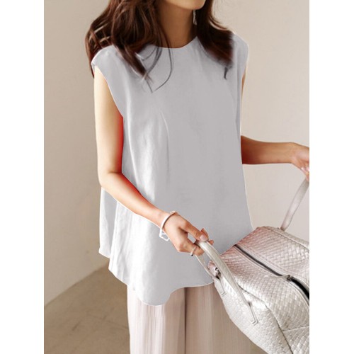 Solid Sleeveless Crew Neck Casual Women Tank Top