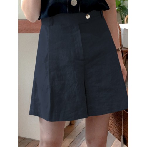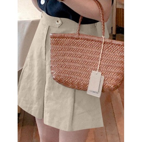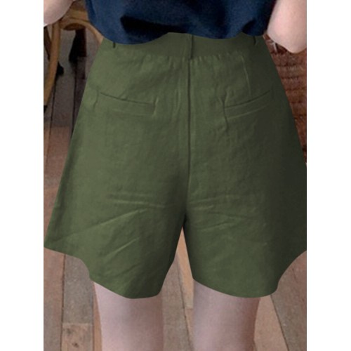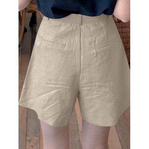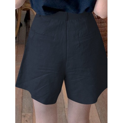 Women Solid Zip Loose Wide Leg Casual Shorts
